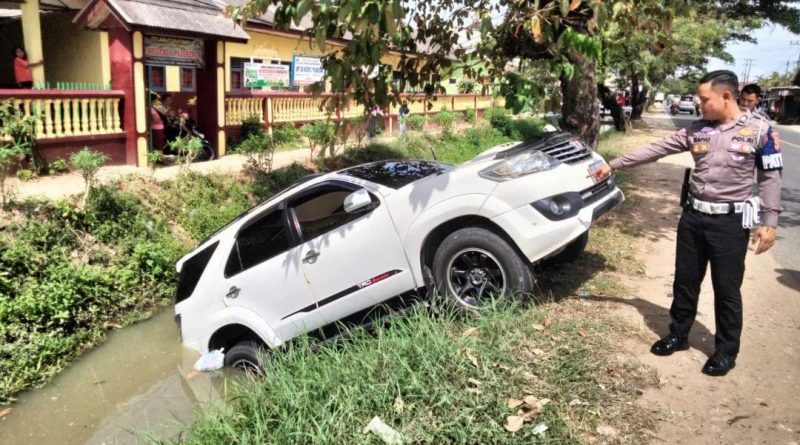 Sebelum masuk kedalam parit, kata Kanit Gakkum, kendaraan Fortuner tersebut sempat menabrak 1 unit sepeda motor yang berada dibelakangnya, sehingga sepeda motor berikut pengendara dan seorang penumpangnya ikut tercebur kedalam saluran air.