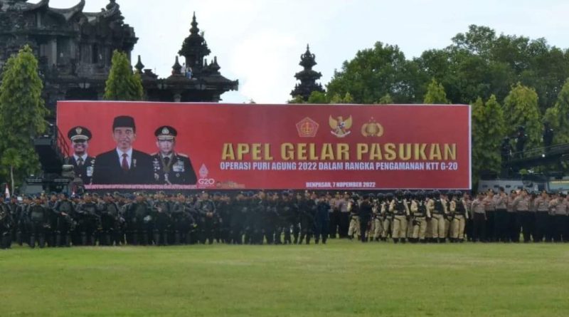 Denpasar, Mitra News – Polri melaksanakan apel gelar pasukan Operasi Puri Agung 2022 dalam rangka Pengamanan KTT G-20 Bali. Senin (7/11/22).