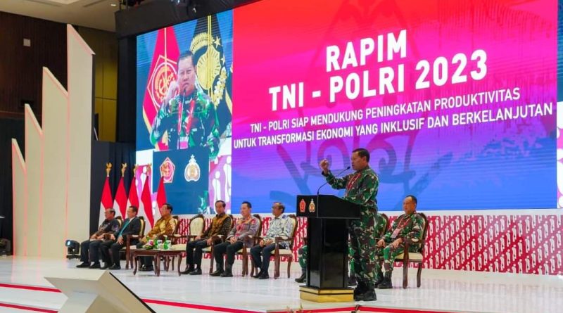 Jakarta, Mitra News – Tentara Nasional Indonesia (TNI) dan Kepolisian Republik Indonesia (Polri) menggelar Rapat Pimpinan (Rapim) TNI-Polri tahun 2023 mengusung tema, “TNI-Polri Siap Mendukung Peningkatan Produktivitas Untuk Transformasi Ekonomi Yang Inklusif dan Berkelanjutan”. Bertempat di Golden Ballroom The Sultan Hotel dan Residence, Jalan Gatot Subroto, Tanah Abang Jakarta Selatan, Rabu (8/2/2023).