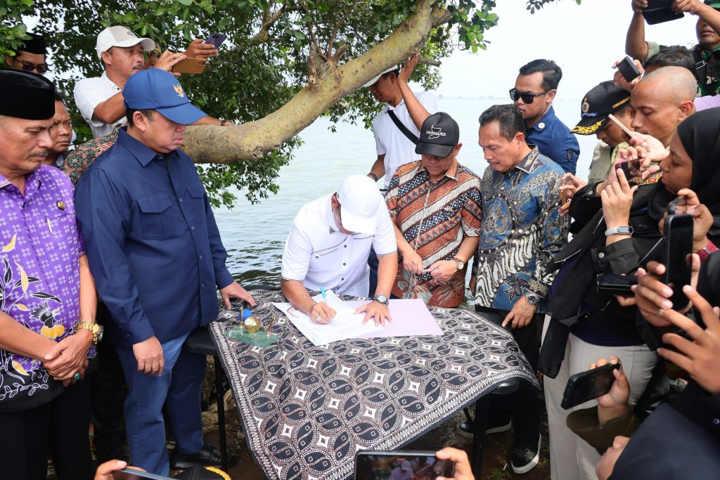 Dalam kesempatan ini, Menteri Nusron didampingi Direktur Jenderal Penanganan Sengketa dan Konflik Pertanahan, Iljas Tedjo Prijono dan Kepala Biro Hubungan Masyarakat, Harison Mocodompis, menyaksikan Penandatanganan Permohonan Pembatalan SK Sertipikat Hak Guna Bangunan (HGB) dan Sertipikat Hak Milik (SHM) yang diajukan oleh Kepala Kantor Pertanahan Kabupaten Tangerang yang langsung disetujui oleh Kepala Kantor Wilayah BPN Provinsi Banten.